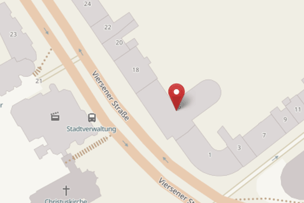 Ab Hauptbahnhof Mönchengladbach (Europaplatz) fahren Sie mit den Buslinien 3, 7, 8 oder 10 bis zur Haltestelle Abteiberg. Von dort erreichen Sie unser Büro in ca. 4 Gehminuten über die Wallstraße.
